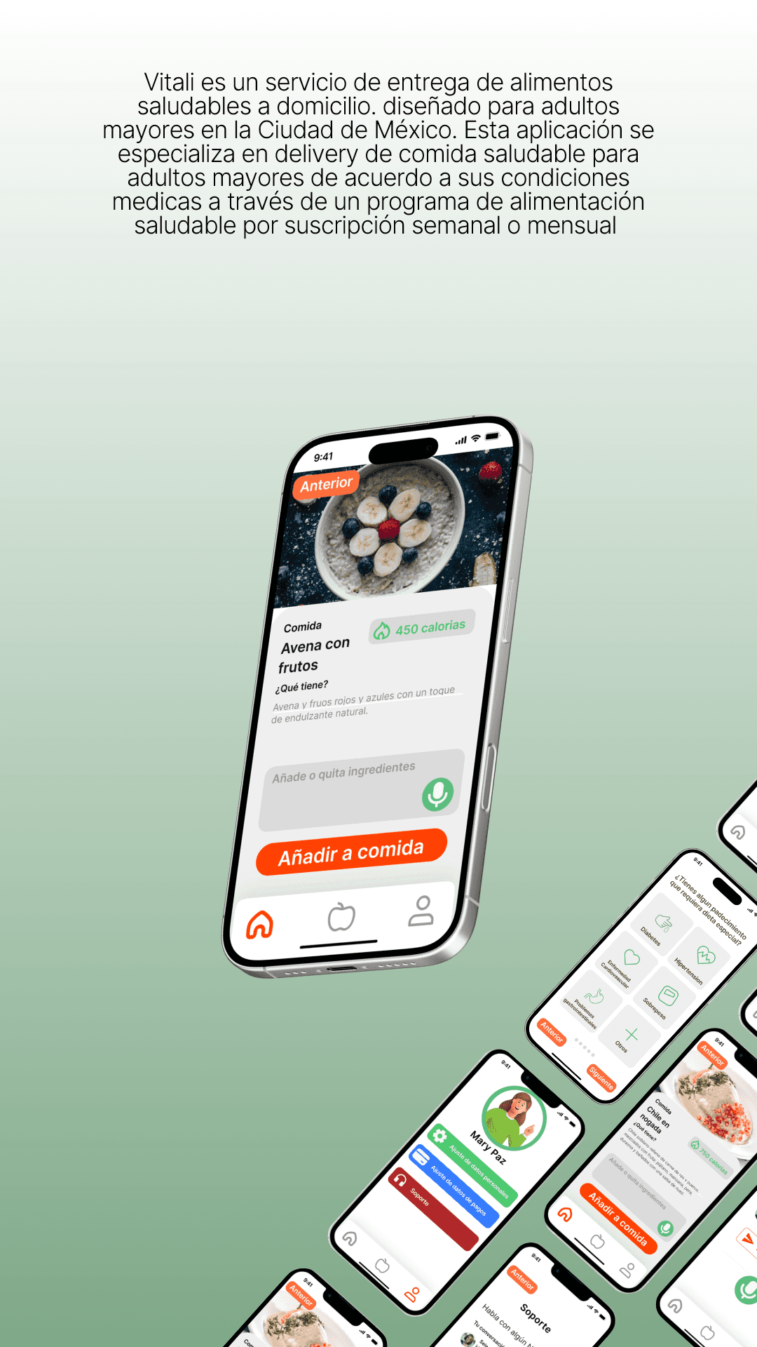 Servicio de alimentación saludable para adultos mayores personalizado según las condiciones medicas.